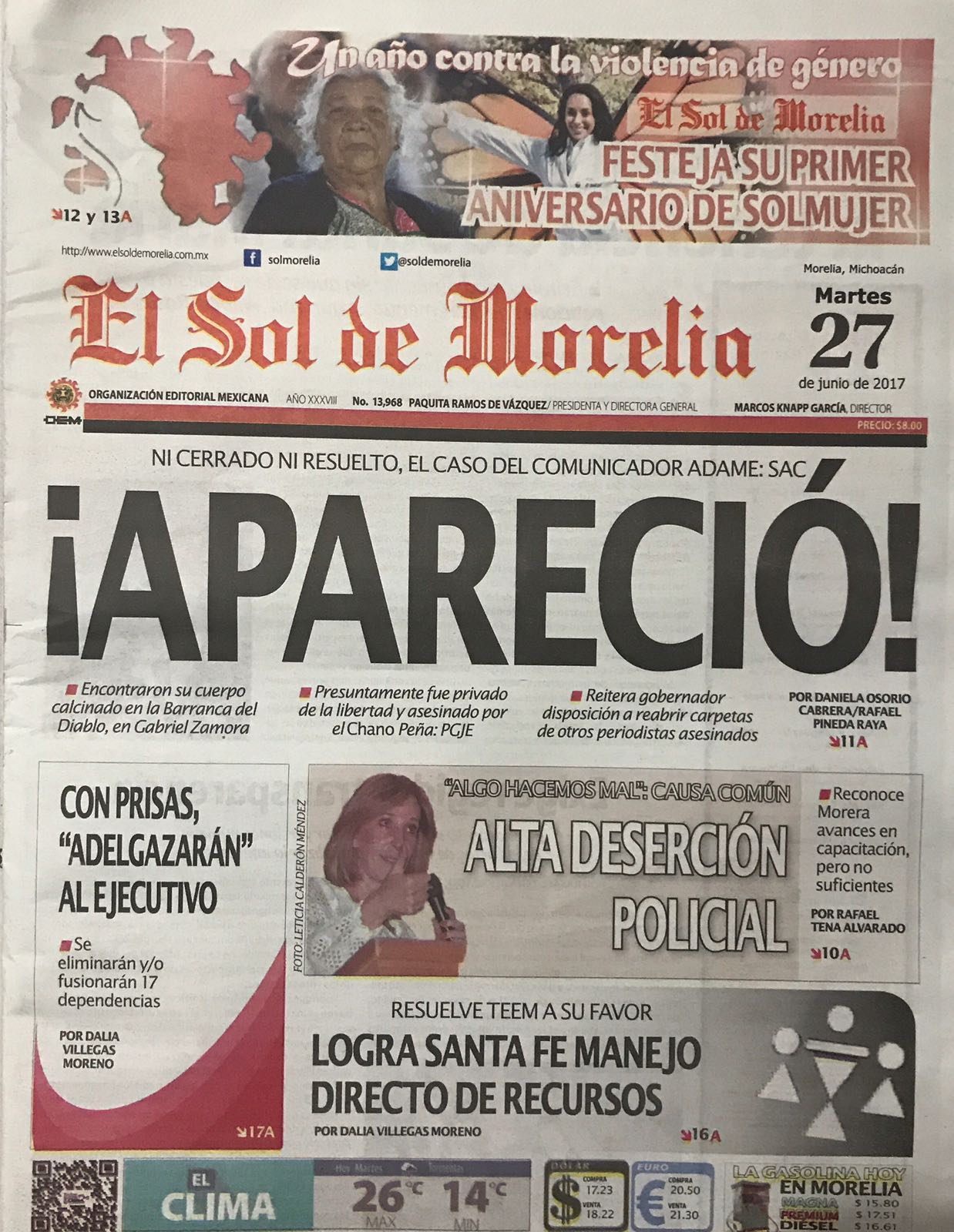 En la víspera en la capital michoacana, Morelia, periodistas se habían manifestado en las calles –como en varios estados del país- para repudiar el asesinato ocurrido el 15 de mayo de 2017 de Javier Valdez Cárdenas, cofundador del semanario Ríodoce del estado de Sinaloa. Salvador lamentó no haberse enterado a tiempo para acudir, seis días después habría una marcha similar, para entonces el motivo sería él.